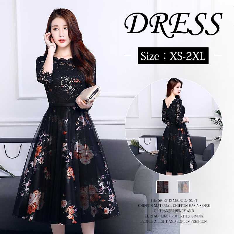 パーティードレス 大きいサイズ ワンピース 結婚式 袖あり レディース ドレス レースワンピース フォーマル きれいめ 20代 30代 40代 50代 60代 秋 冬 [NO.12-82-93](365DF223)