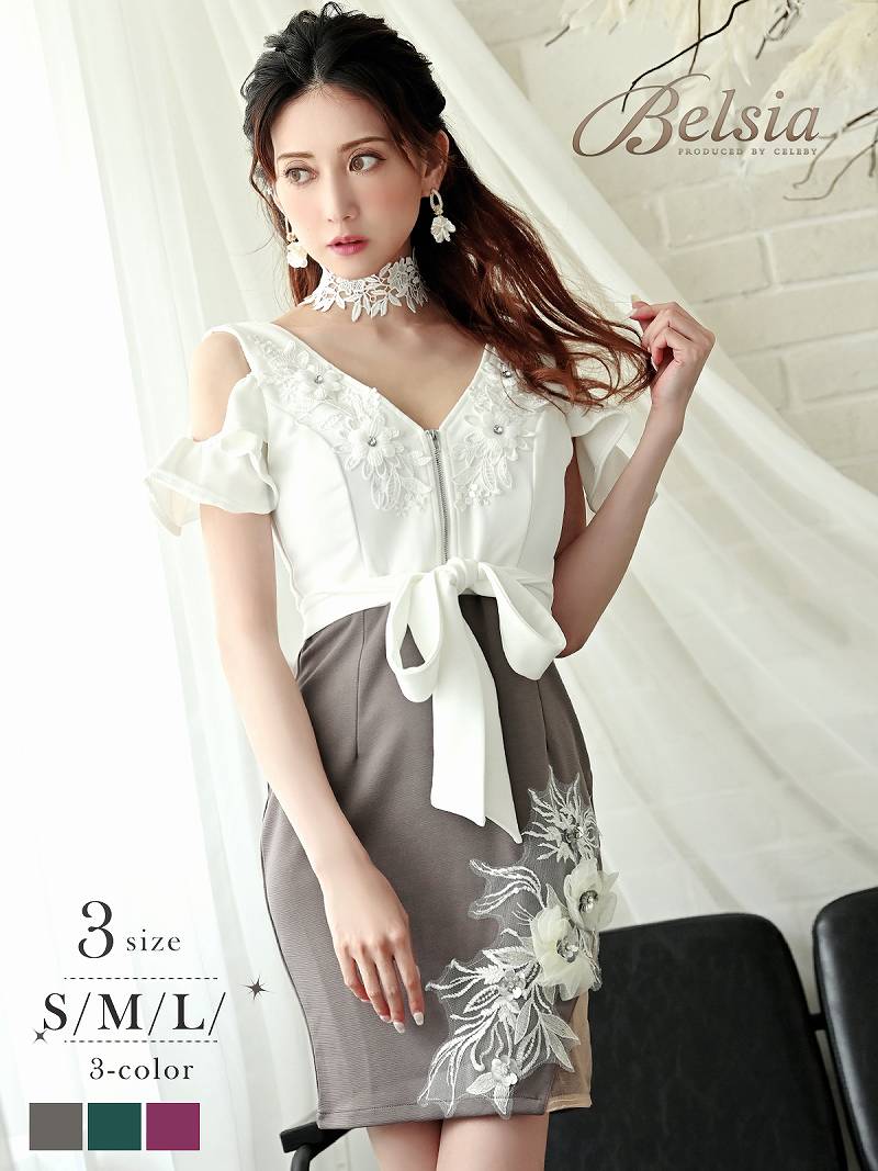 キャバ ドレス キャバドレス ミニドレス ミニ キャバクラドレス キャバクラ パーティードレス セクシー 韓国ドレス 韓国 高級 立体刺? 花 袖付き オフショルダー 体型カバー セクシー チョーカー リボン 大人 Belsia ゆきぽよ 大きいサイズ 膝 あす楽 送料無料