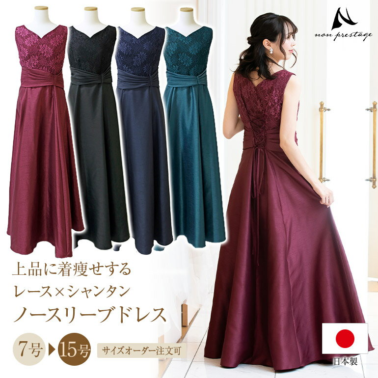 【安心の日本製】演奏会用ドレス ピアノ 発表会 大人 レース×シャンタン ロングドレス フォーマルドレス 演奏会 体型カバー パーティードレス 太め 大きいサイズ 小さいサイズ op3687
