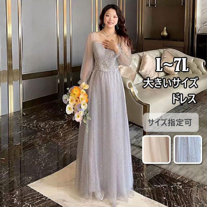 パーティードレス ロングドレス 演奏会 袖付き グレー ベージュ 大きいサイズ 大人 キャバロングドレス イブニングドレス ゆったり ピアノ 発表会 母親 結婚式 披露宴 二次会 成人式 可愛い お呼ばれドレス 20代 30代 40代 L 2L 3L 4L 5L 6L 7L dt002m5m5c6
