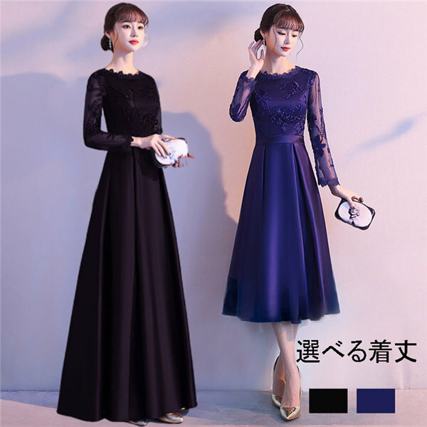 ドレス 大人 ピアノ 発表会 ロングドレス ミモレ丈 演奏会 演奏会用ドレス 袖付き ピアノ発表会 黒 結婚式 高校生 パーティードレス 演奏会ドレス 母親 コンクール イブニングドレス ロング ネイビー レースドレス 大きいサイズ お呼ばれ da453d3
