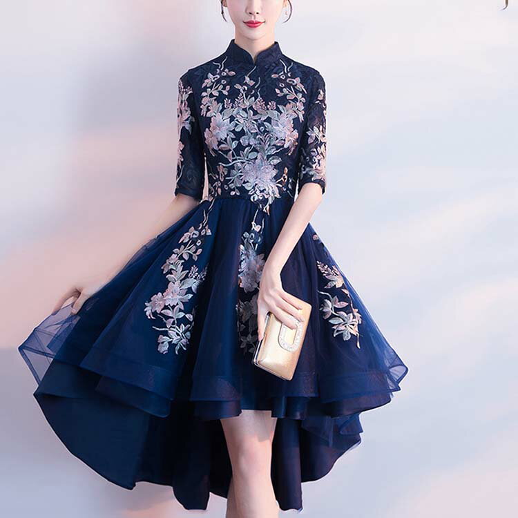ブライズメイドドレス お揃い ドレス チャイナ風ドレス パーティードレス ロング ワンピース 演出 イベント 二次会ドレス ブライダル レディース 結婚式 二次会 発表会 演奏会 Aライン 立ち襟 お呼ばれ 20代30代40代 大きいサイズ おしゃれ 可愛い 2点セット 青 グレー