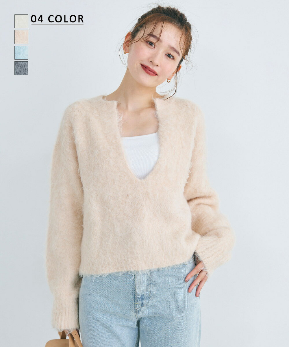 【クーポンで4,950円 11/8(金)12時40分~23時59分まで】モヘアスキッパーニットトップス|モヘアニット モヘア スキッパーニット スキッパー Vネック 厚手 厚手ニット ニット 暖かい 重ね着 セーター 長袖 冬 秋|【宅配便】cpn awi (予約12月21~25日以内順次発送)