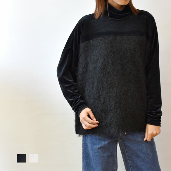 irise(イリゼ) シャギードッキング ベロア ハイネックプルオーバー(ir030)(t6013)