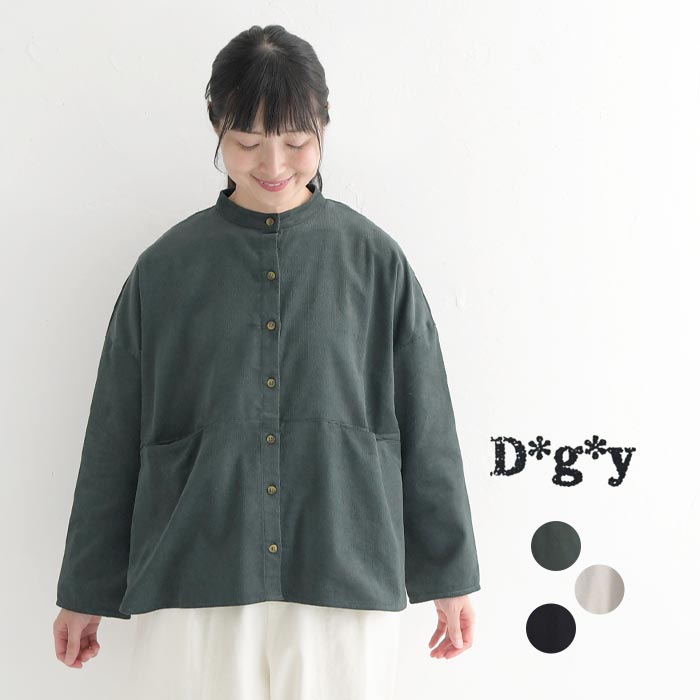 D*g*y バンドカラーシャツ ブラウス 長袖 レディース コーデュロイ dgy 綿100%/ カジュアル ナチュラル シンプル ワイド Aライン トップス 大人可愛い 無地 エコロコ sel, Ms, Ls, LL, 3L, 30代 40代 50代/ 秋冬 24AW1213R,