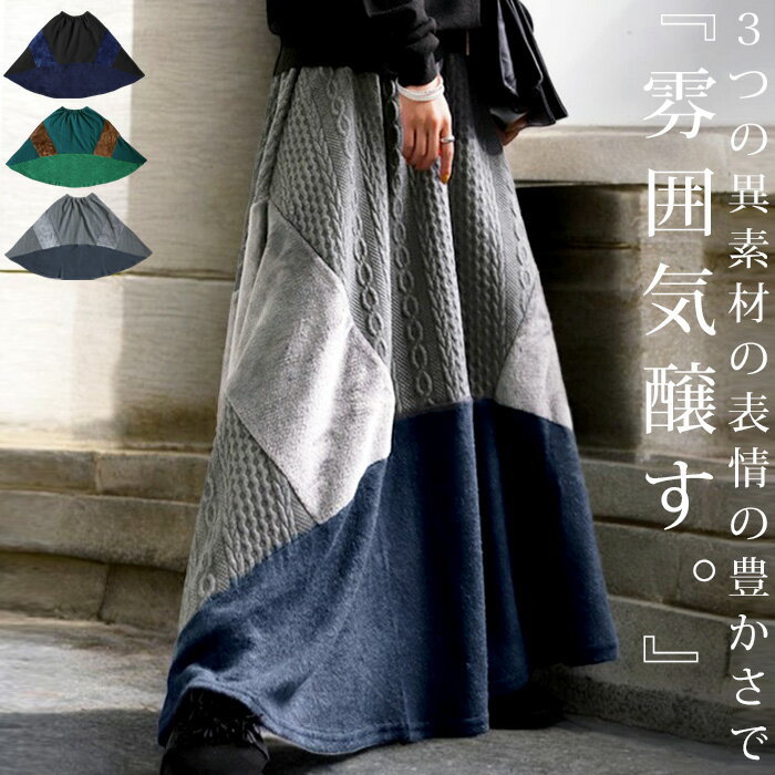 ワイドスカート スカート ロングスカート ボトムス ロング丈 マキシ丈 ベロア ニット ニットスカート 秋冬 大きめ ナチュラル カジュアル レトロ ヴィンテージ 秋冬 ブラック グレー グリーン 大人 レディース おしゃれ 誕生日 プレゼント AminaCollection