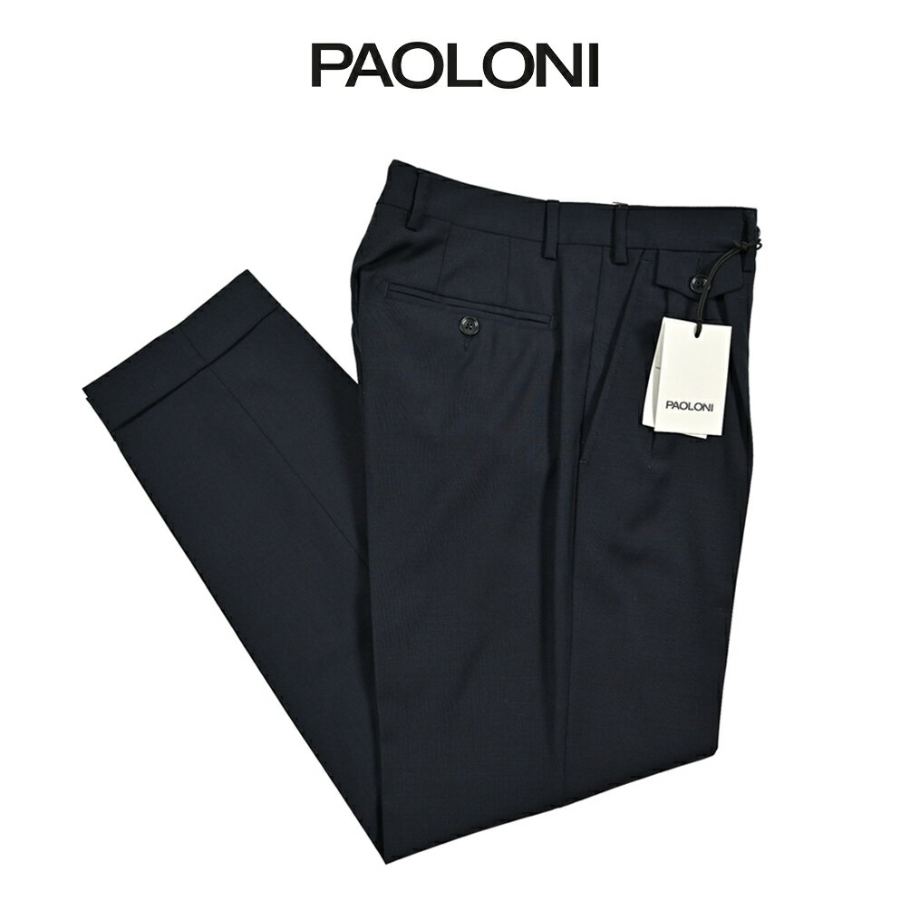 パオローニ PAOLONI スラックス ツータック パンツ 春夏 秋 3シーズン メンズ ウール ストレッチ ネイビー イタリア ブランド 3611P108