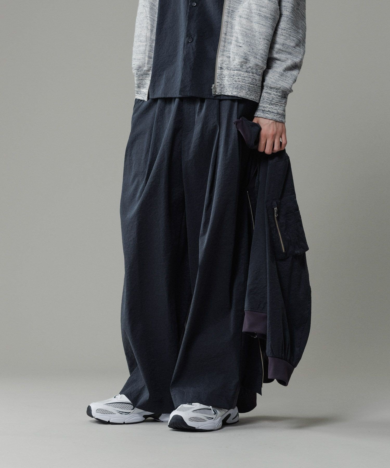 ADAM ET ROPE' HOMME ストレッチナイロン ボリューム イージー ワイドパンツ / 接触冷感 / セットアップ対応 アダムエロペ パンツ その他のパンツ グレー ブラック【送料無料】