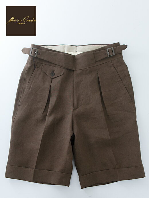 Massimo Corrado マッシモ・コラード 別注 ベルトレストラウザーショーツ ブラウン ウールリネン イタリア製 mac501002