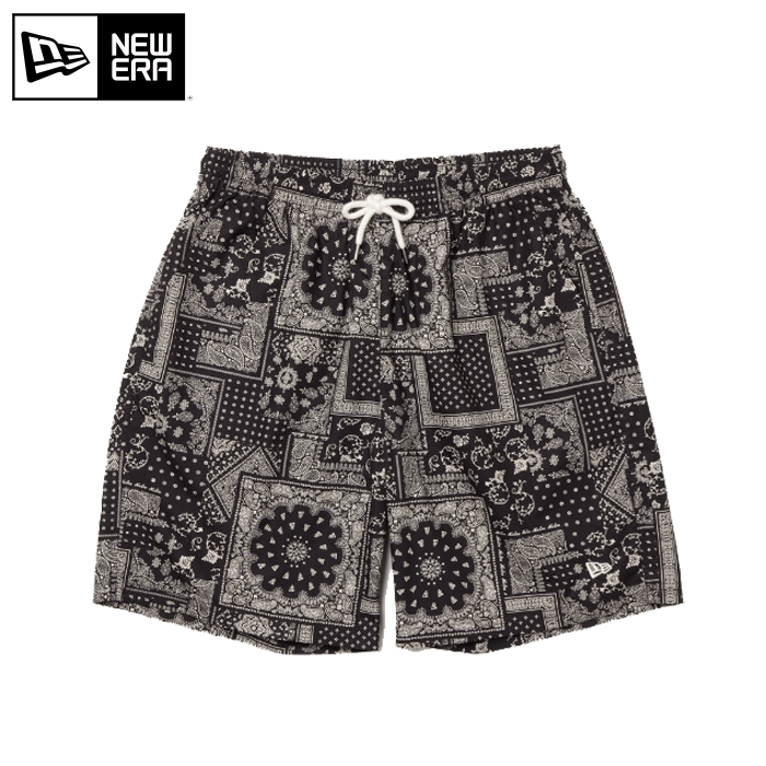 ニューエラ パンツ ショート ズボン ブラック ペイズリー (メール便 送料無料) NEW ERA WOVEN SHORT PANTS F PAISLEY BLK