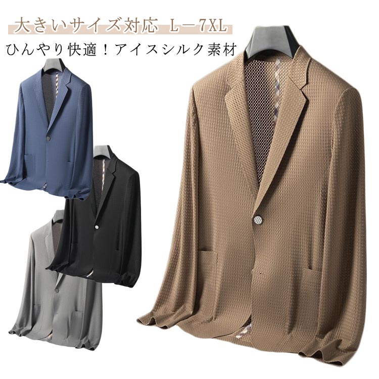 スーツ風 ジャケット 大きいサイズ アイスシルク ブレザー 薄手 UVカット ひんやり 夏用 通気性 軽量 メンズ 冷感 L-7XL 2025春夏 新作