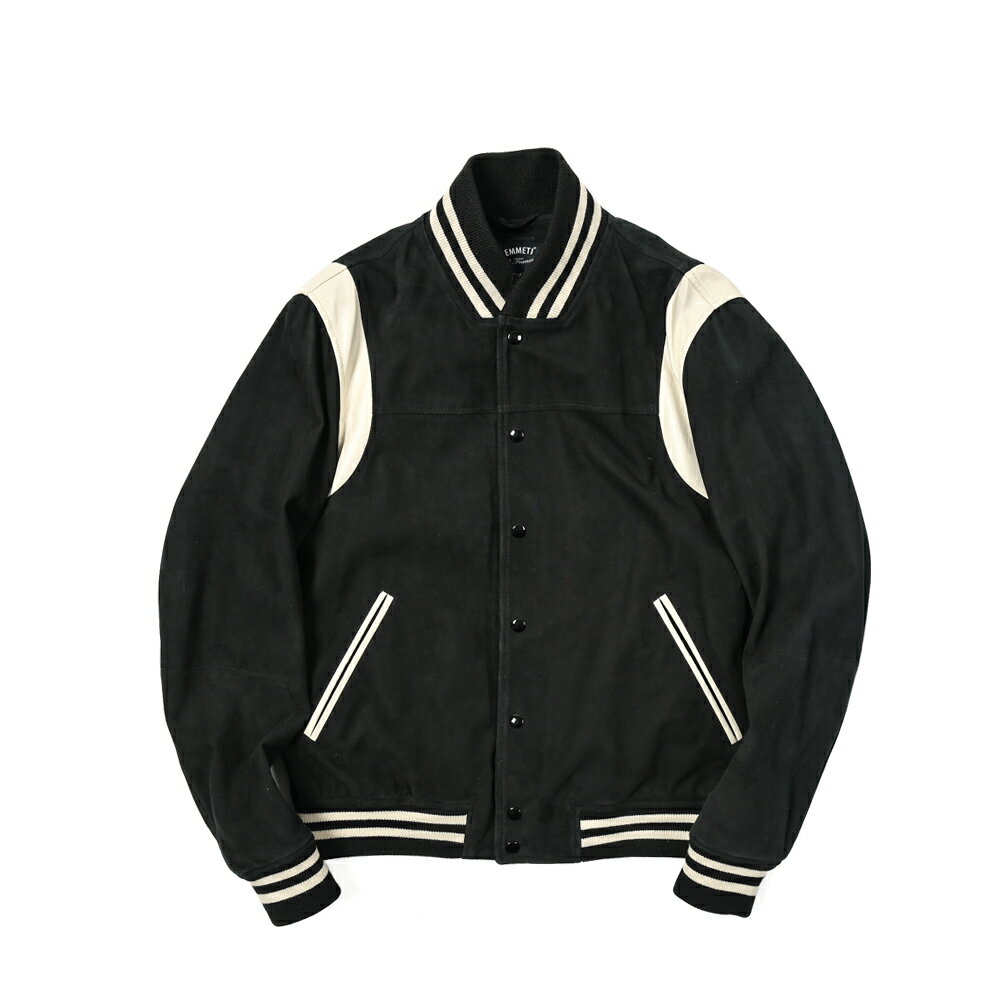 【半額以下】 エンメティ EMMETI AREZZO レザージャケット 異素材コンビブルゾン スタジャン 秋冬 春 3シーズン メンズ ゴートスエード ブラック イタリア ブランド MADE IN ITALY