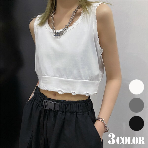 ダメージ加工 ノースリーブ ショート丈トップス タンクトップ 夏 クロップド丈 トップス ダンス 衣装 ヒップホップ コスチューム 韓国ファッション 大きいサイズ 個性的 服