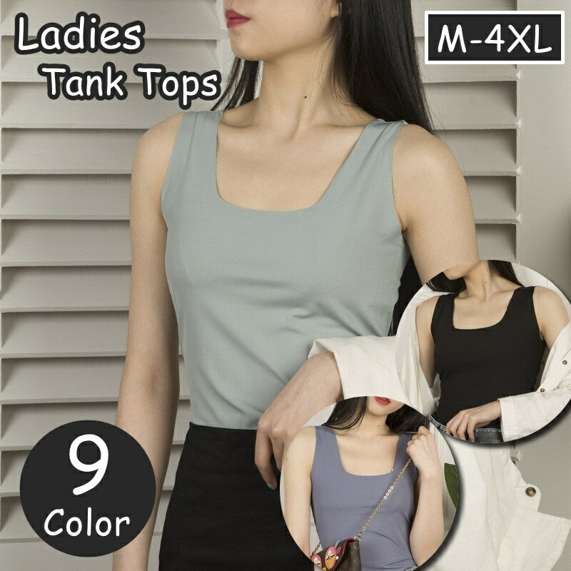 送料無料 タンクトップ ノースリーブ レディース 女性 トップス スクエアネック オーバルネック ラウンドネック シームレス 袖なし 切りっぱなし 大きいサイズ 無地 単色 カットソー インナー シンプル カジュアル お洒落