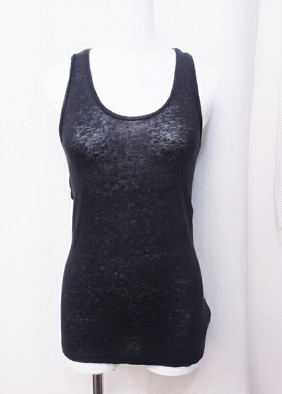 【中古】Acne アクネ ノースリーブ カットソー 透け感 リネン100% S 黒