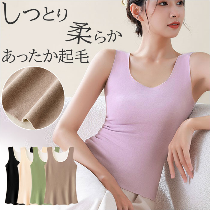 タンクトップ レディース あったか 通販 ノースリーブ カットソー レイヤード 重ね着 インナー 下着 肌着 軽量 暖かい 無地 シンプル 袖なし ベーシック かわいい おしゃれ 大人