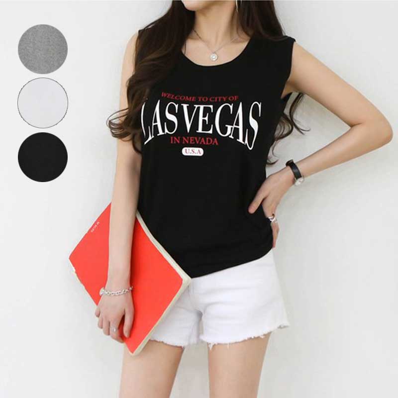 【送料無料】ノースリーブ 英字[LASVEGAS…]ロゴ タンクトップ Tシャツ カットソー トップス