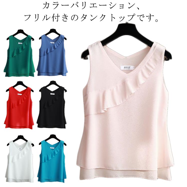 ブラウス タンクトップ レディース シフォンブラウス フリル トップス ノースリーブ インナー カジュアル トップス 夏 ノースリーブシャツ フェミニン エレガント かわいい M L XL 2XL 3XL 4XL 5XL 6XL