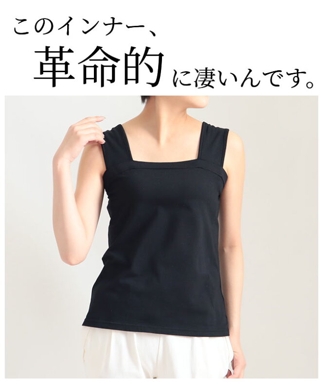 ブラ紐隠しインナー インナー タンクトップ 黒 白 ブラック ホワイト グレー ピンク 脇高設計 スクエアネック コットン 40代 レディースファッション 50代女性 ファッション 60代 ミセスファッション サワアラモード sawa a la mode otona 大人 可愛い ナチュラル服
