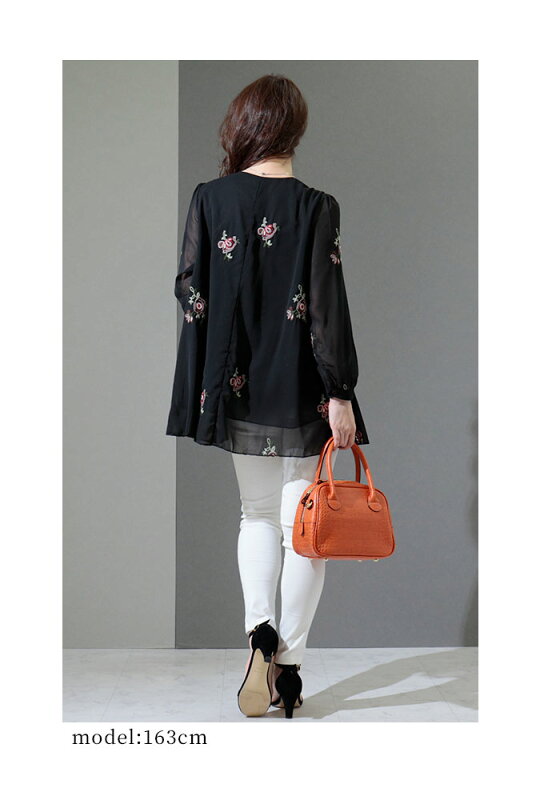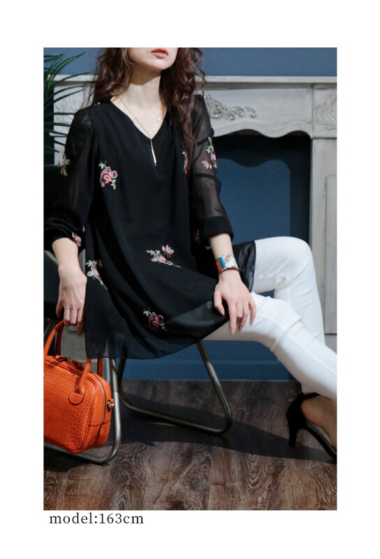 花刺繍舞い散るシアーチュニック レディースチュニック シースルー ブラック フラワー 長袖 春 春服 夏 夏服 秋 秋服 40代 レディースファッション 50代女性 ファッション 60代 ミセスファッション 婦人服 サワアラモード sawaalamode otona 大人 kawaii 可愛い かわいい服