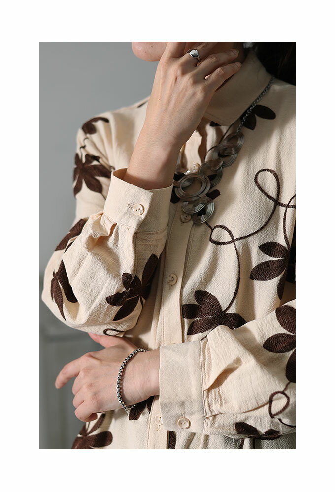 秋色リーフ刺繍のコットンチュニックシャツ レディース ブラウス トップス 長袖 ボタニカル 綿 コットン ロング ベージュ 春 春服 秋 秋服 冬 冬服 30代 40代 50代 60代 サワアラモード sawaalamode otona 大人 kawaii 可愛い 洋服 かわいい服 【9月18日20時販売新作】