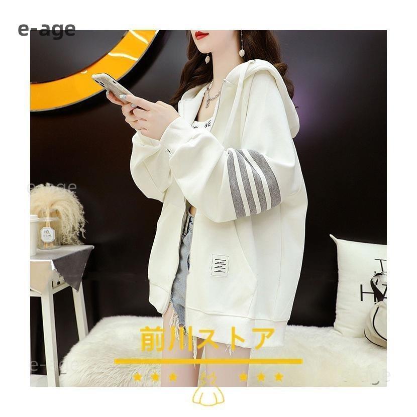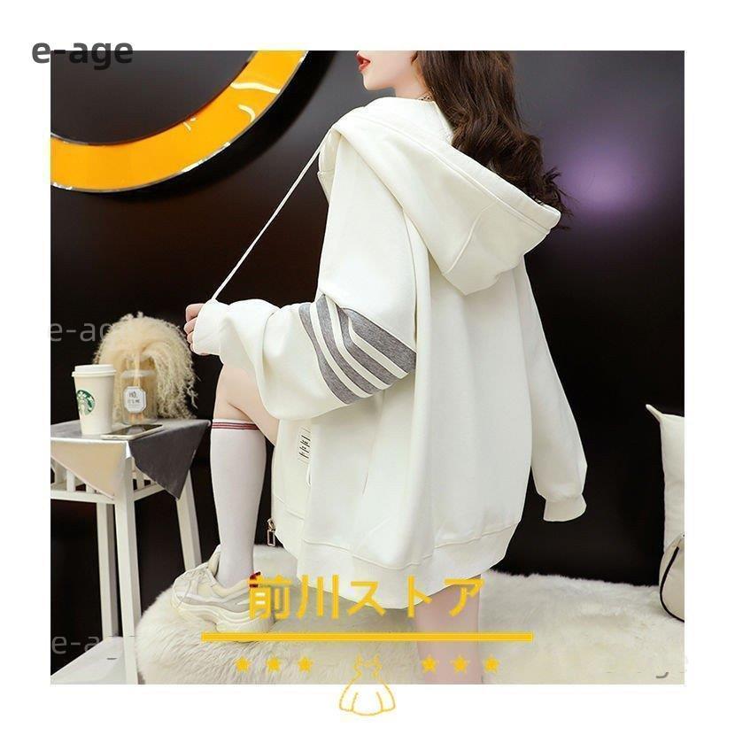 パーカー レディース 秋 白 長袖パーカ ロング丈 スウェット フード付き 40代 30代 トップス ジップアップ 韓国風