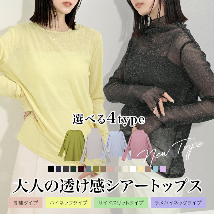 【1点最大428円!おまとめ買いクーポン利用で】 シアートップス シアー トップス 長袖 透け感 夏 涼しい UV シアー カットソー トップス レディース ラウンドネック 選べる2タイプ 重ね着 M L[s2]