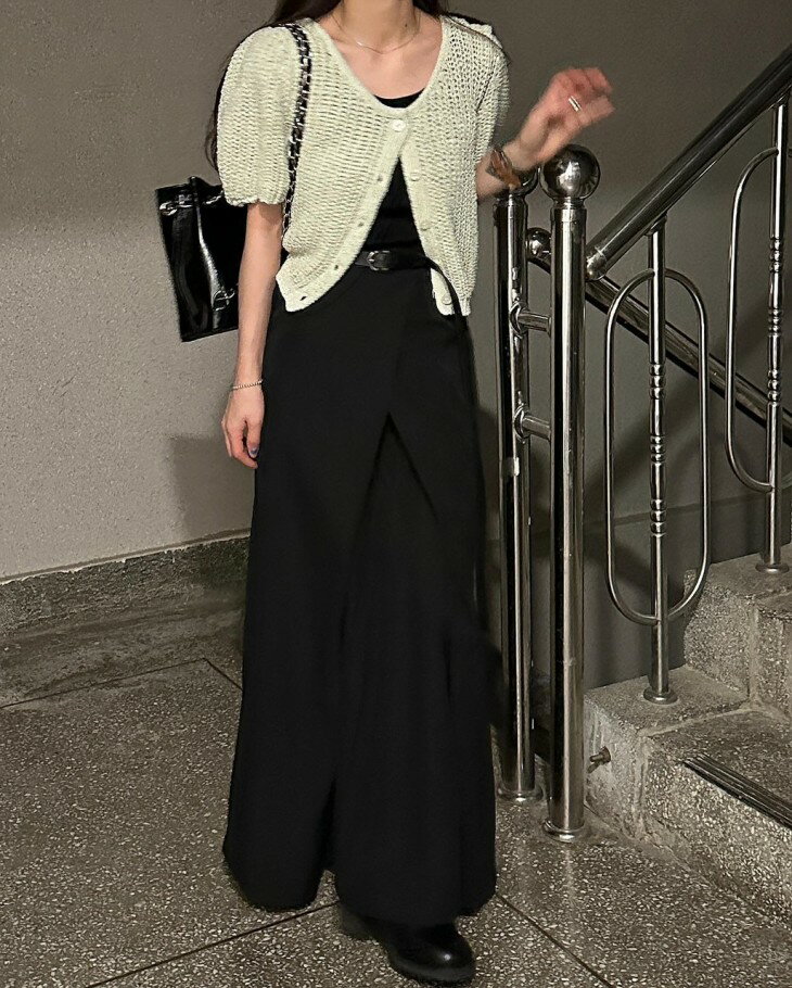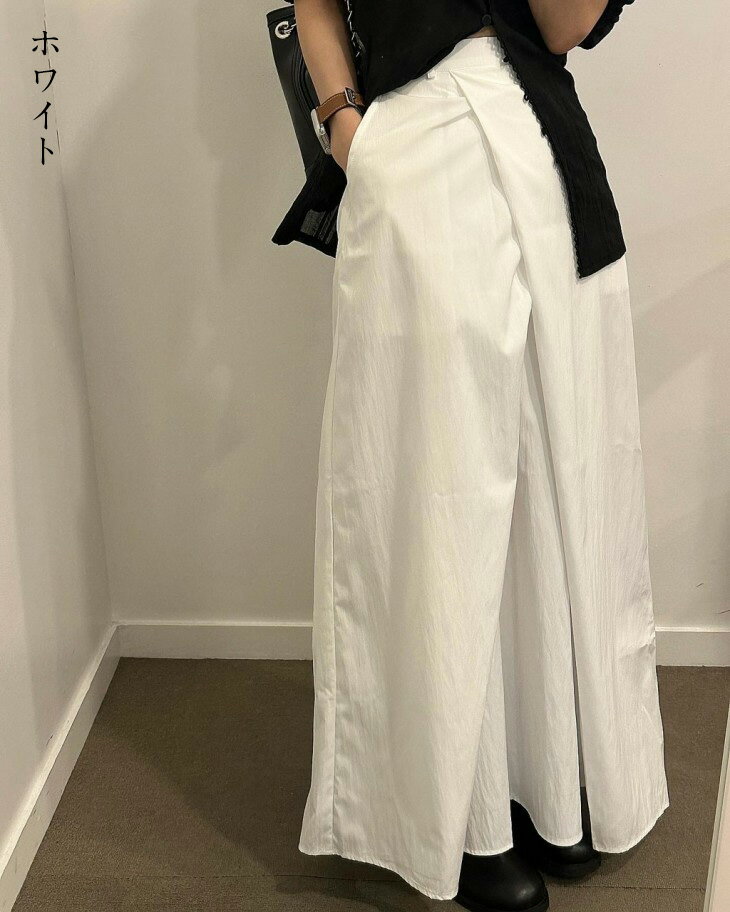 【半額クーポン対象】ハイウエスト フロントタッグ ロングスカート プリーツ風 Aライン 無地 シンプル マキシ 女子会 春夏 おすすめ レディース オシャレ トレンド 人気 プチプラ 韓国ファッション【6670-fx】【予約販売:15-20日】【送料無料】メ込2