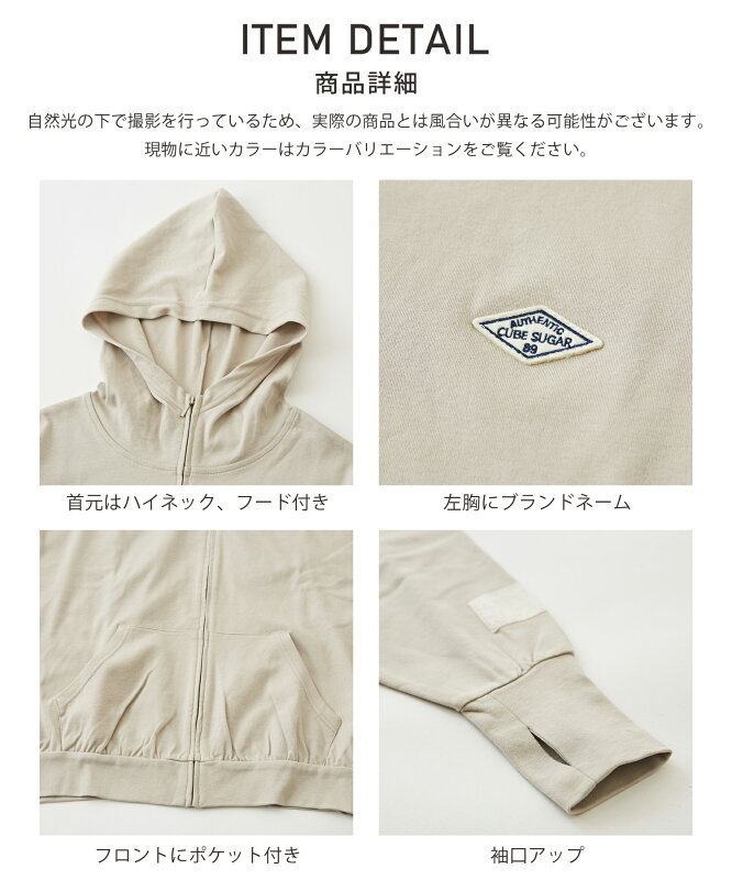 【楽天スーパーSALE限定 44%OFF】【ポイント20倍】uvパーカー / 公式 CUBE SUGAR UVカット加工 ワンポイント ドルマンスリーブ ジップパーカー (6色) フード付き uvカットパーカー レディース UVカット パーカー 指穴 春 夏 羽織もの アメカジ キューブシュガー 紫外線対策