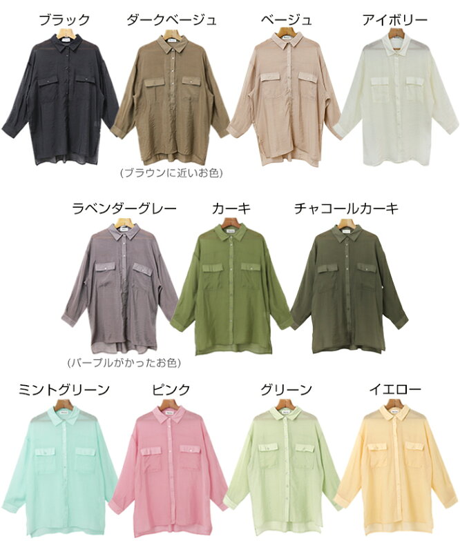 【メール便対応B】【一部予約】オーバーサイズ 長袖 シアーシャツ レディース トップス シアー シャツ ブラウス スリット 透け感 UV対策 冷房対策 羽織り 体型カバー 無地 春 夏 秋