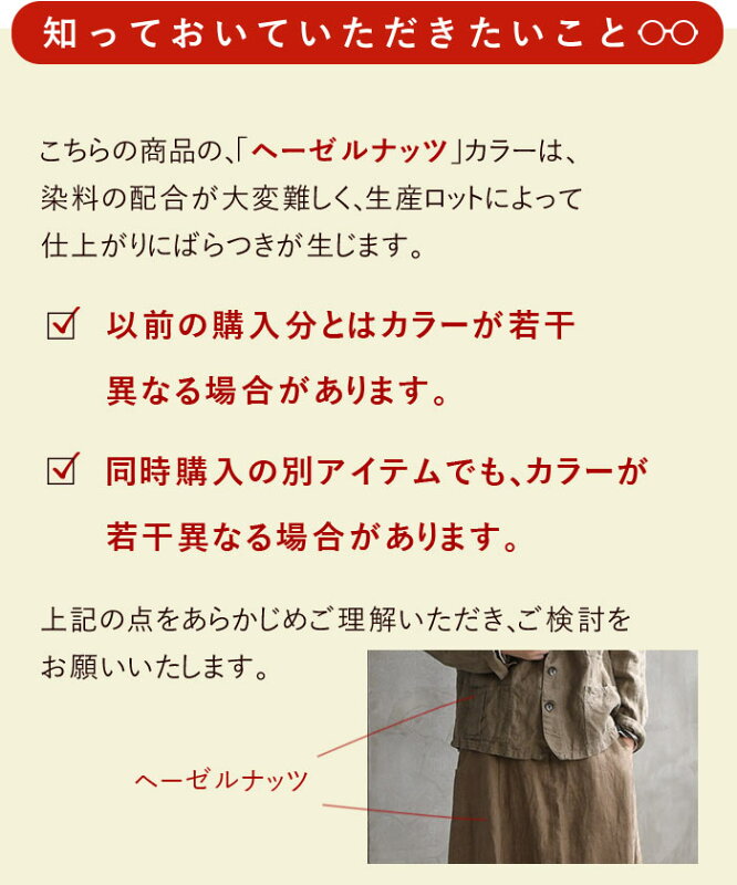 ヘーゼルナッツは、モデルさん着用の画像よりもカーキ寄りの色味で、想像していたより暗めでした。