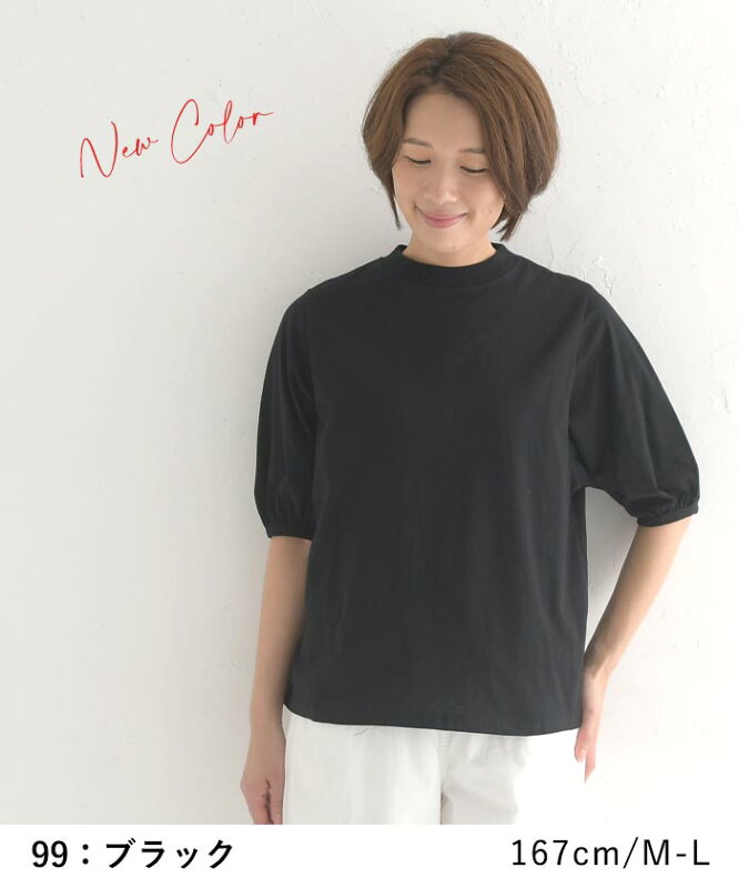 【10日限定!要エントリー!最大100%バック】 【メール便可】 M~3L パフスリーブ 綿 カットソー プルオーバー コットン/ カジュアル ナチュラル 無地 ゆったり 体型カバー レディース エコロコ sel, Ms,Ls,LL,3L,/ 30代 40代 50代 大きいサイズ 春 夏 24SS0424R,