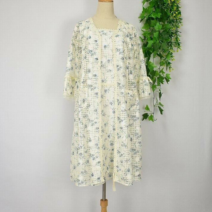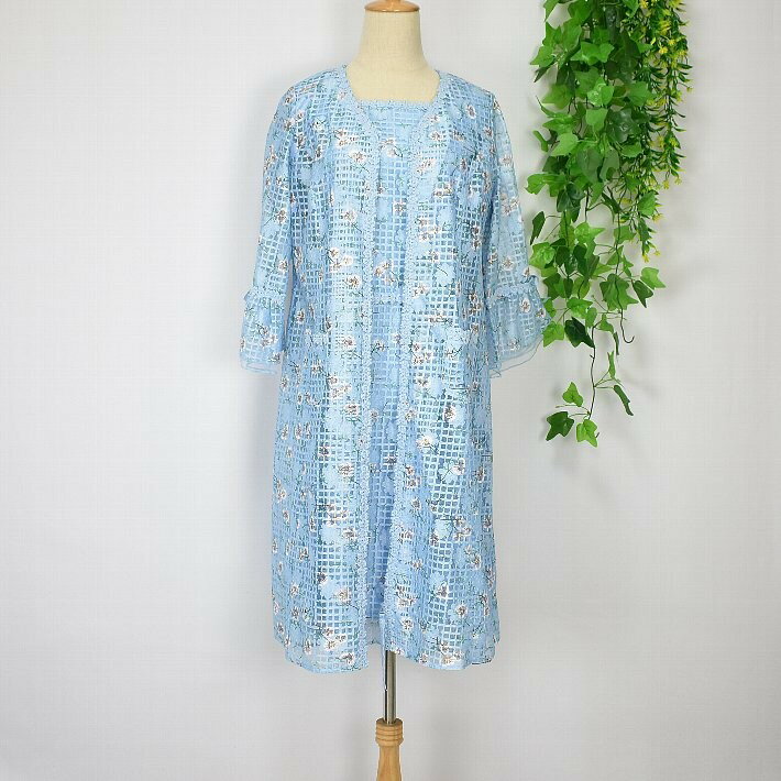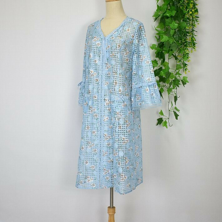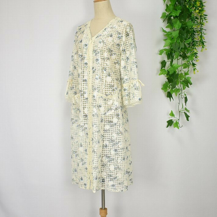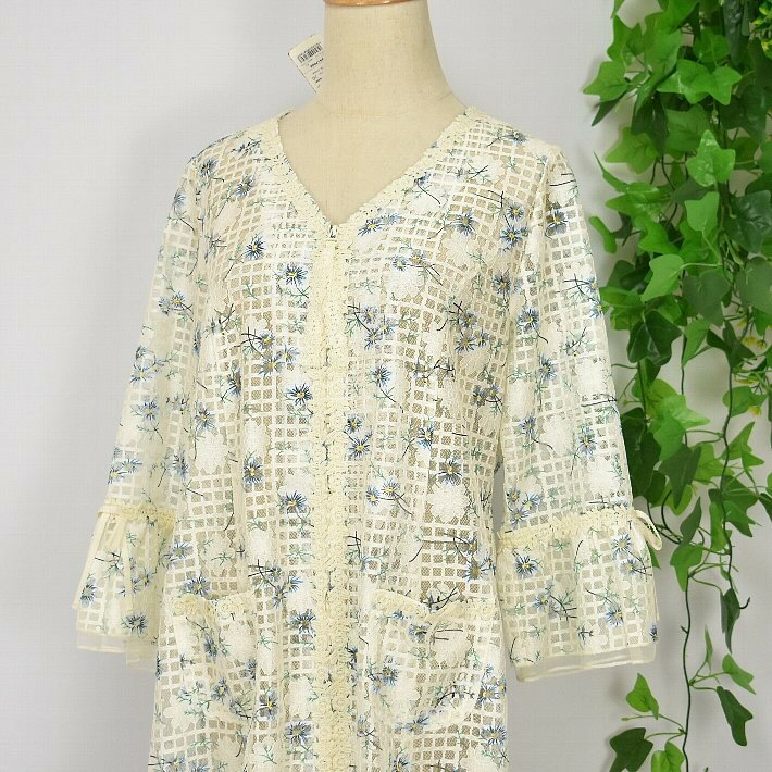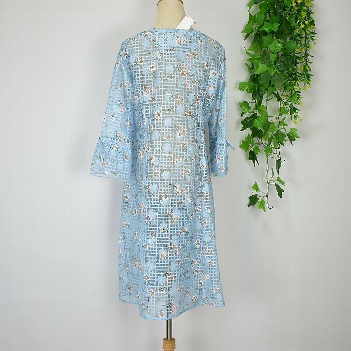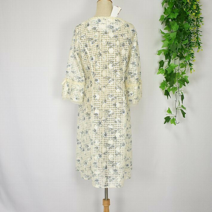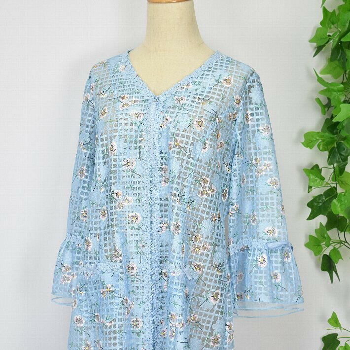 \定価の40%OFF+LINEお友達で10%OFF/スーパービューティー パワーネット レース ひざ丈 トッパー Aライン ワッフル織り 花柄 7分袖 レディース カジュアル パリ リボン 2417006 アウター ジェイシー 春/夏/秋 SuperBeauty 【小】