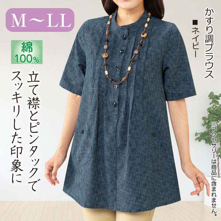値下げ!1,495円 夏トップス【レディースファッション】【夏チュニック】《M・L・LL・3Lサイズ》かすり調ブラウス TSS1867-2-91203▼レディース 婦人服 ミセス 40代 50代 60代 70代