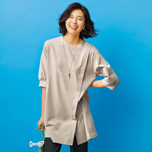 【楽天スーパーSALE 20%OFFクーポン配布中】 チュニック 汗ジミ対策!スリットデザインチュニック(S~5L) ベルーナ belluna 40代 50代 60代 ミセス 大人 ファッション レディース 夏 夏服 トップス