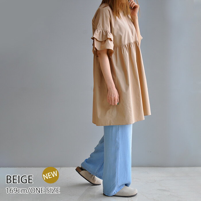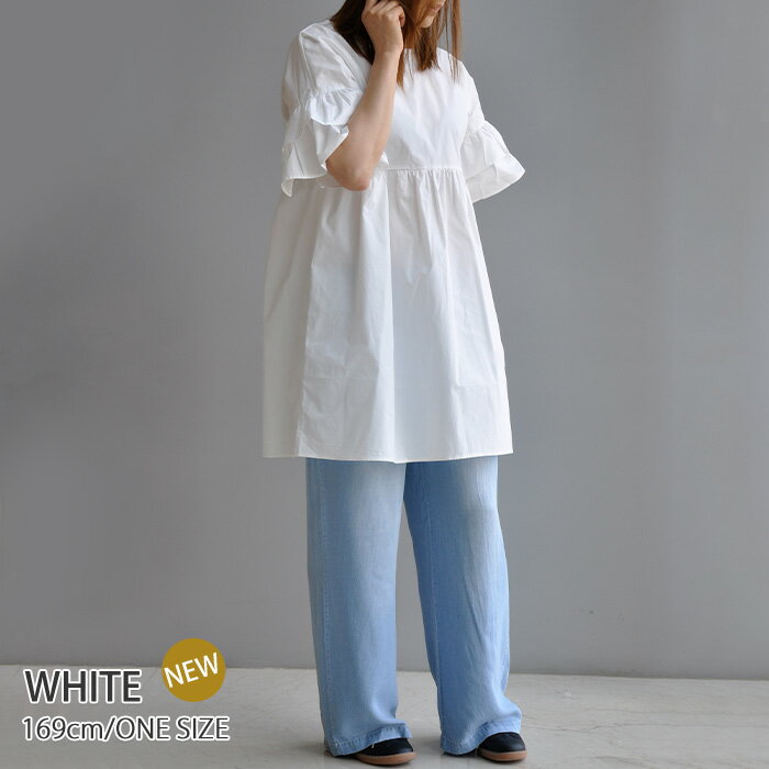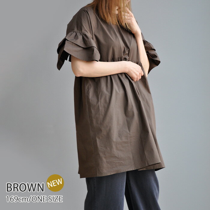 チュニック レディース ワンピース チュニックワンピース ブラウス 春夏 ロングシャツ トップス プルオーバー ボリュームスリーブ 五分袖 薄手 ギャザー チュニックワンピ ゆったり aライン カジュアル ビッグサイズ 体型カバー 着痩せ ブラック
