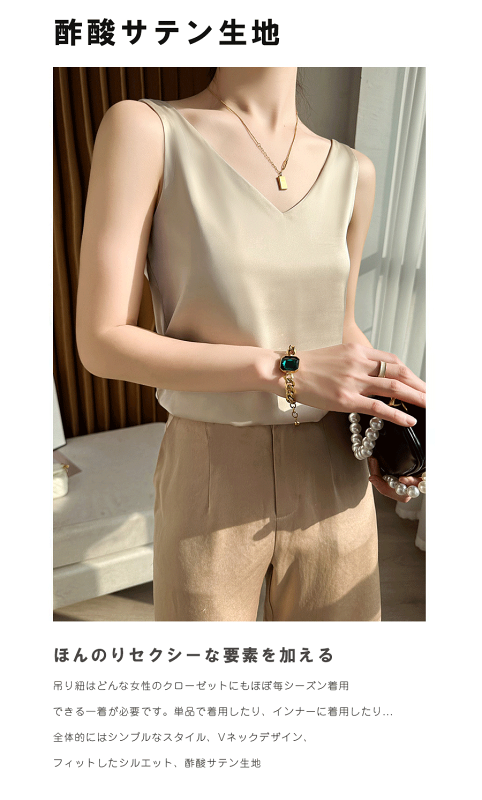 【★6/11 01:59まで 800円OFFクーポン利用で1520円!】 P5倍【即納!】キャミソール レディース 肌着 春 夏 秋 おしゃれ 無地 シンプル ベーシック 下着 光沢感 上品 着心地 透けない ロング ネグリジェ 部屋着 ナイトウェア エロ