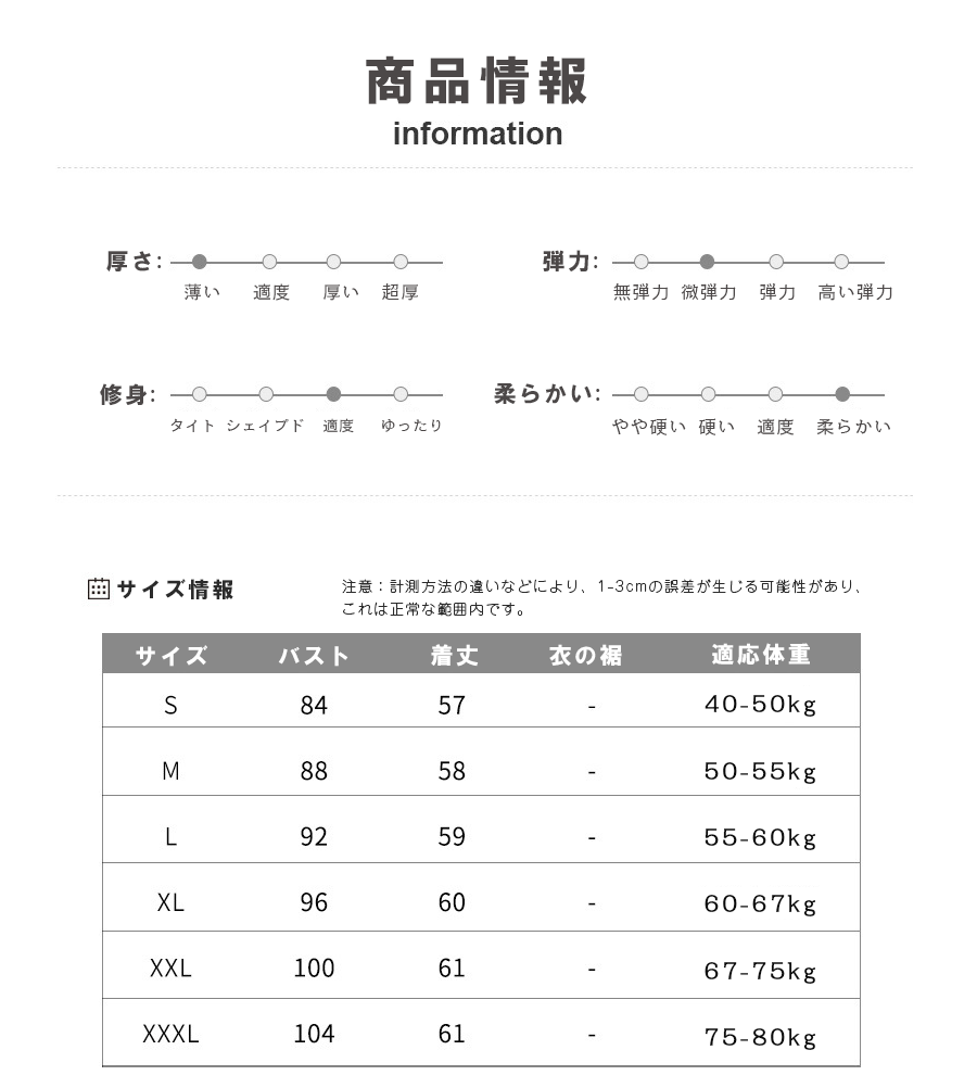 胸元は二重に布がなってますが、カップ付きではないので注意してください!