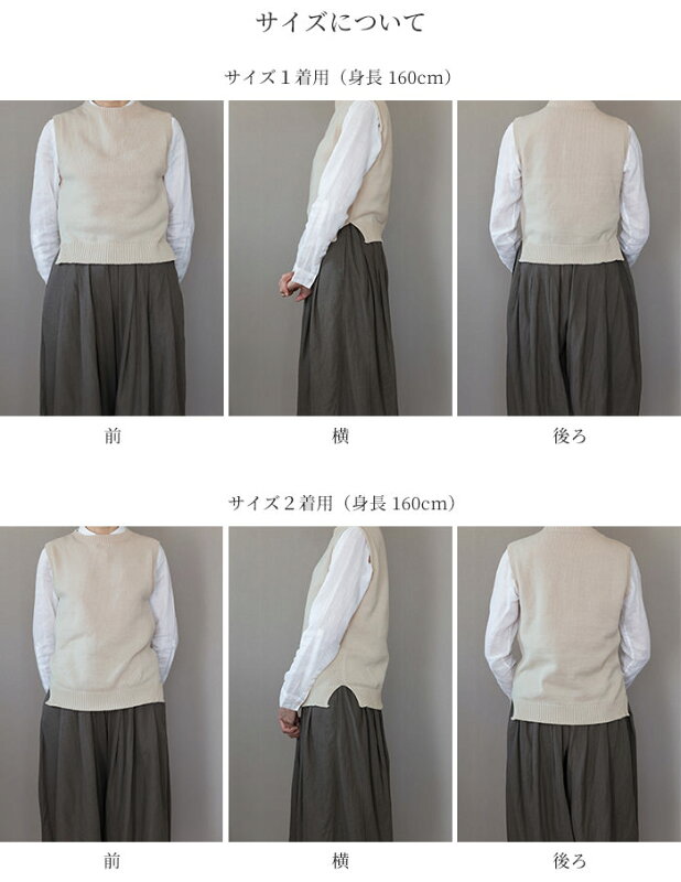 こういったシンプルなベストがなかなか無く探していた所、こちらのショップさんでドンピシャな物を見つけ『ナス紺サイズ2』を購入しました。