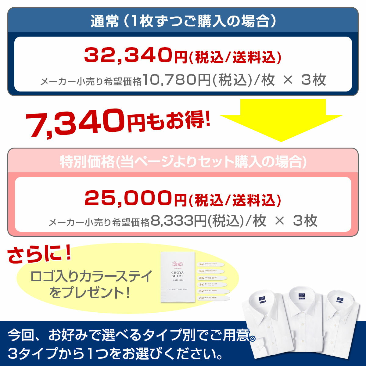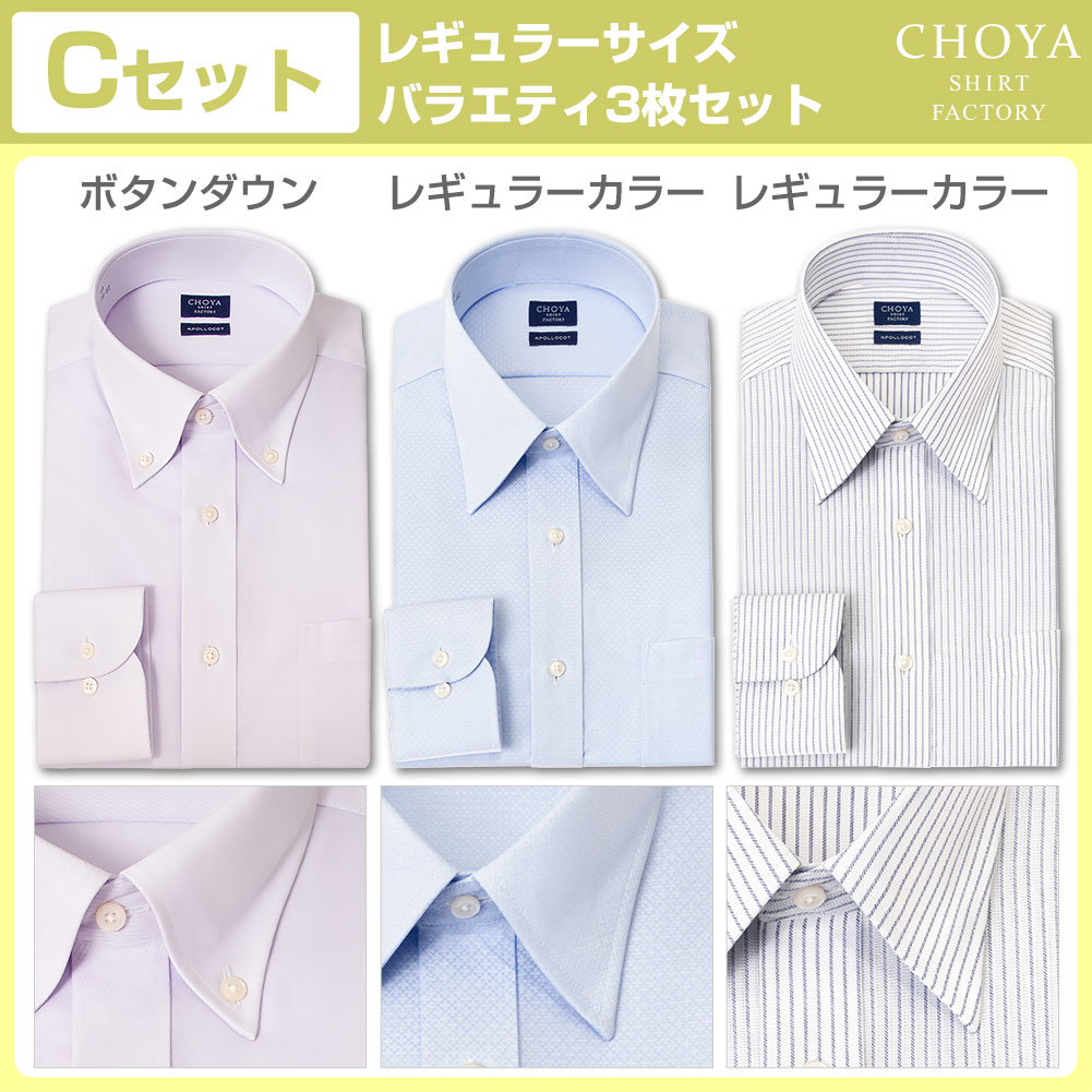 Yシャツ 日清紡アポロコット【3枚セット】 長袖 ワイシャツ メンズ 形態安定 綿100% (CFD-SET-R3) CHOYA SHIRT FACTORY(cfd-set-r3) 24FA