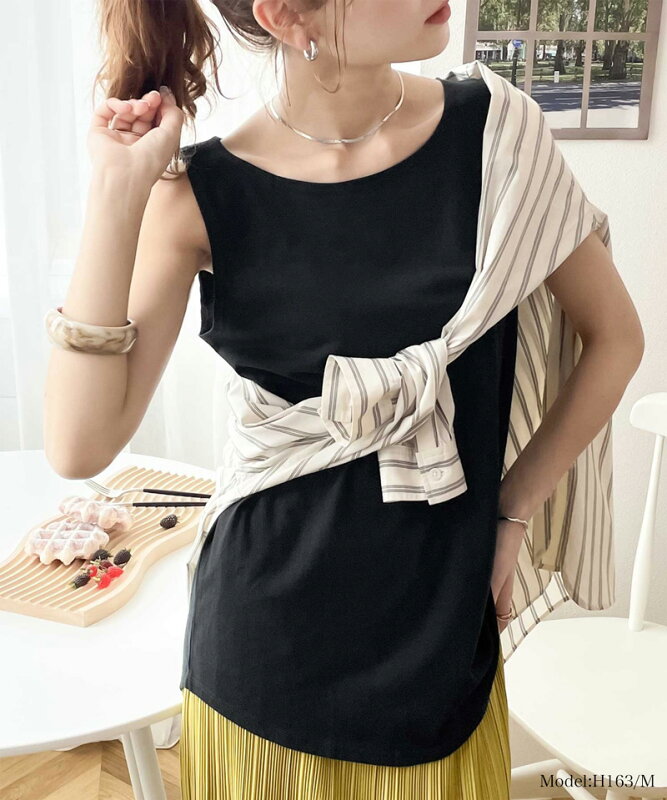【MAX20%offクーポン対象】 送料無料 トップス タンクトップ レディース カットソー キャミール コットン ラウンドヘム 袖なし レイヤード Aライン チュニック丈 綿100 ノースリーブ オーバーサイズ ゆったり インナー 大きいサイズ 春 夏 2024ss クラシカルエルフ cl7029