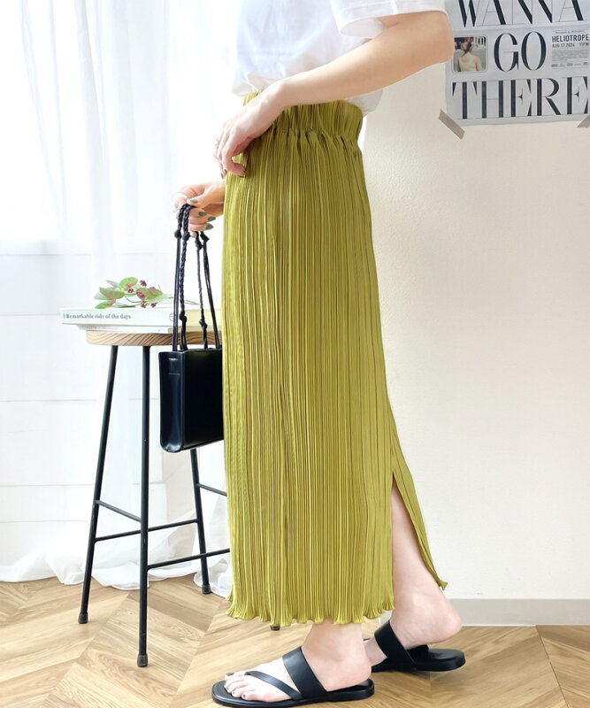 《ms+ ideal》送料無料 ボトムス レディース スカート ロング タイト スリット メロー プリーツ スリット 着痩せ きれいめ カジュアル オフィス 大きいサイズ 小さいサイズ 2024ss クラシカルエルフ ce0940041