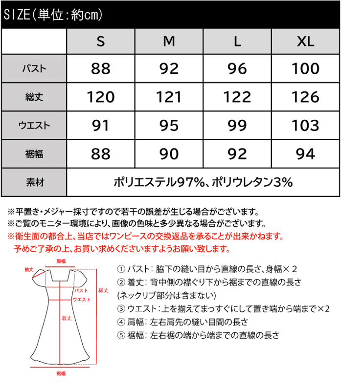 ウエストと丈感は調節がある程度出来るのでグラマーさんは特に胸とおしりのサイズ感で決めるのが良さそうです。