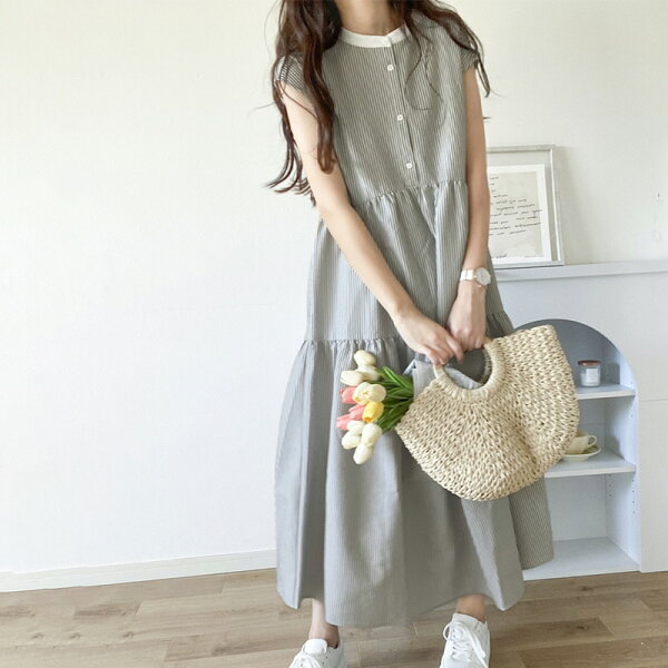 送料無料 ワンピース レディース シャツワンピース バックリボン ティアード Aライン ストライプ 無地 フレンチスリーブ ロング マキシ 体型カバー ゆったり 半袖 袖なし 大きいサイズ 小さいサイズ 春 夏 2024ss クラシカルエルフ ce1070036