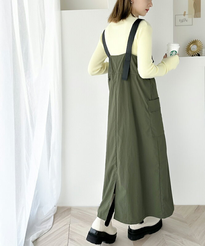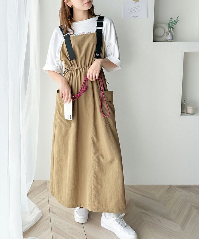【MAX30%offクーポン対象】 《javaジャバコラボ》 送料無料 ワンピース レディース 調節可 肩 ベルト シャカシャカ ナイロン ワンピ サイド カーゴ ポケット スリット ドロスト レイヤードコーデ 体型カバー 大きいサイズ 春 夏 2024ss クラシカルエルフ jv1010240