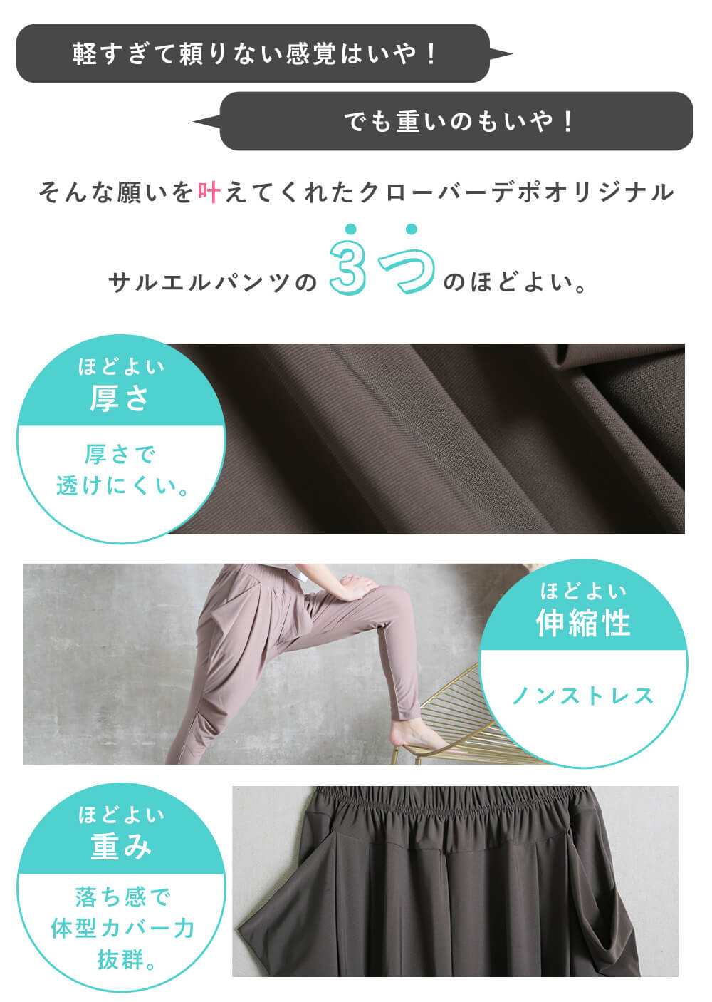 以前この手のサルエルでスッケスケの生地の物を買ってしまい失敗したことがありましたが、こちらの商品は素材的には同じ感じで光沢がありテロンとした生地ですが、透けることはなく一安心。