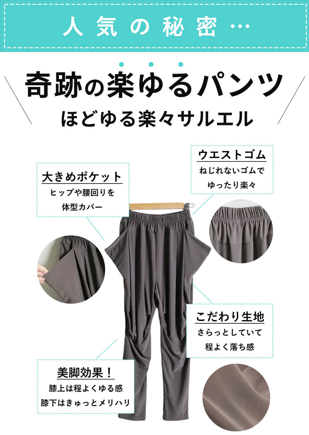 サルエルのゆとりがある部分もくしゅくしゅと、まとまってしまいます。