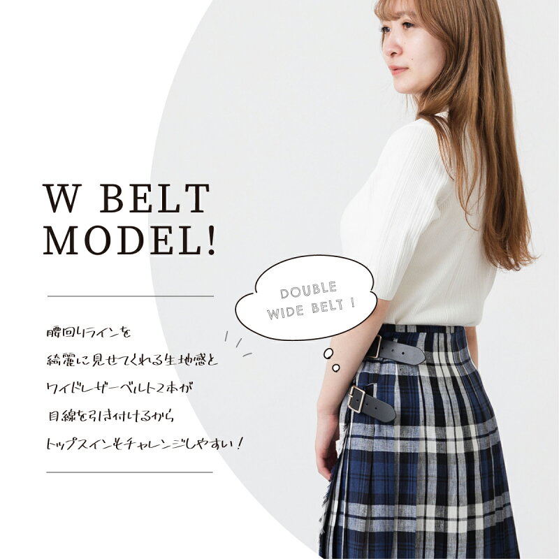 ダブルベルトのデザインは一周ぐるっとプリーツに