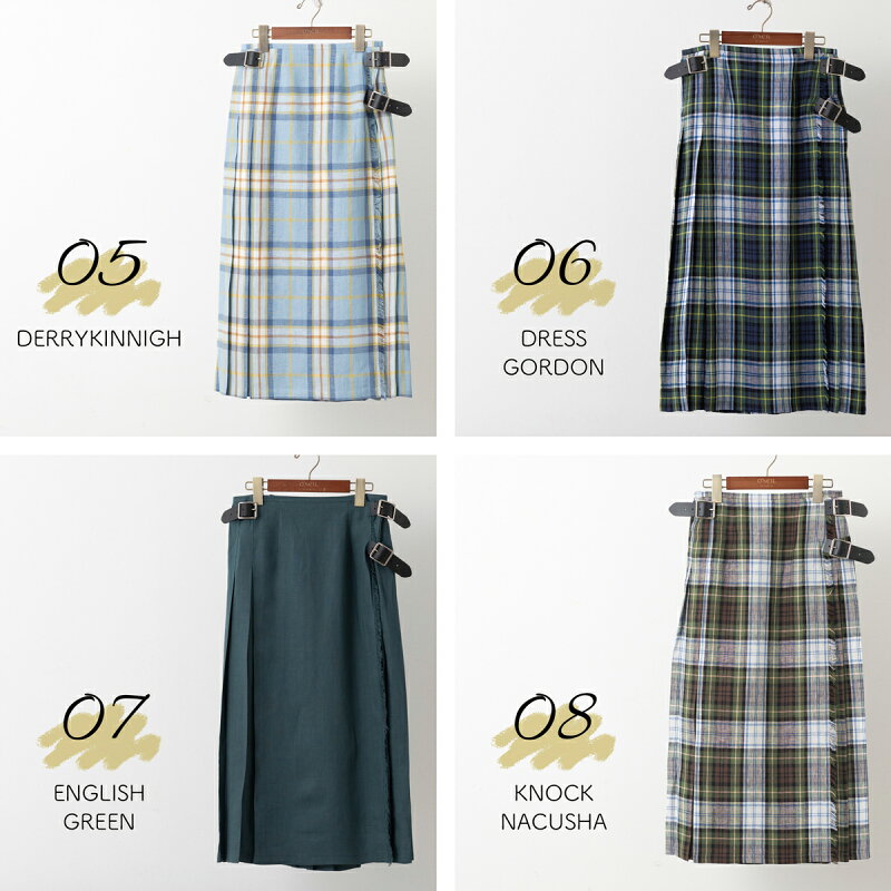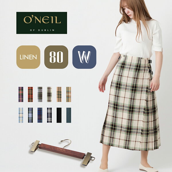 O'NEIL OF DUBLIN リネン100% W ダブル ワイドベルト モデル キルトスカート 公式ハンガー オニール オブ ダブリン 80cm ロング 2024 新色 キルト ラップスカート アイルランド製 レディース タータンチェック チェック 無地 プレーン