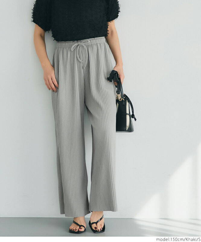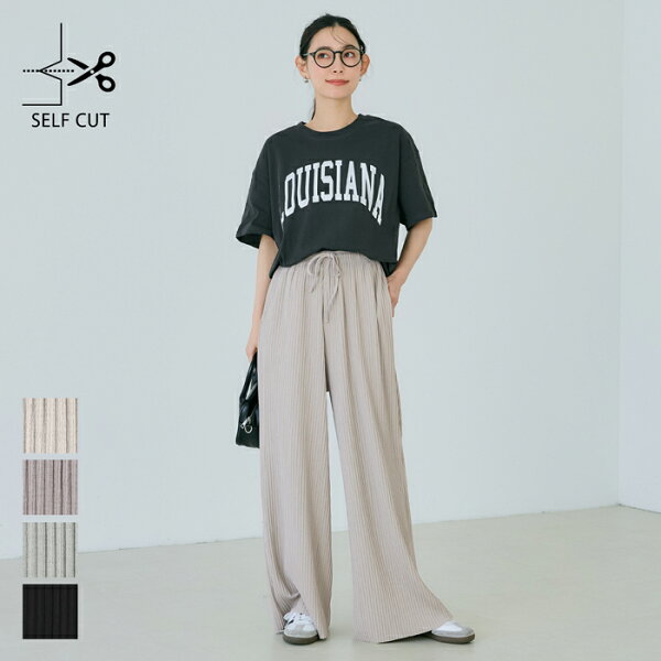 リブパンツ レディース カットオフ イージーケア イージーパンツ ウエストリボン ウエストゴム ストレッチ ロング丈 メール便不可 24ss coca コカ